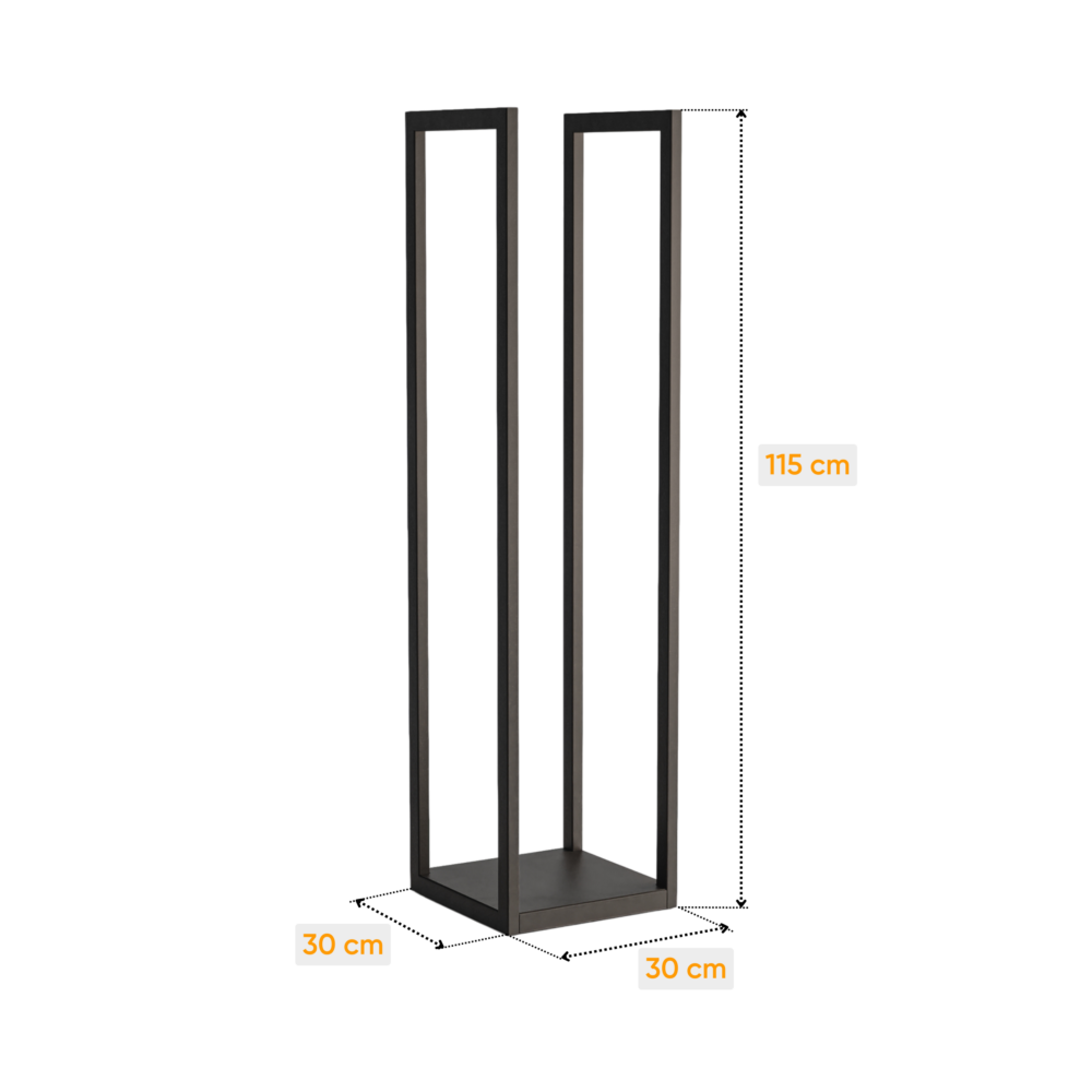 Stojak na drzewo COPANO został wykonany z profilu stalowego 20 x 20, a następnie pomalowany proszkowo, co powoduje, że jego konstrukcja jest odporna na uszkodzenia mechaniczne i korozję, a czarno-matowy kolor dodaje całości elegancji. To doskonały wybór nie tylko do domu, ale również na zewnątrz – na taras, ogród lub do altany.
