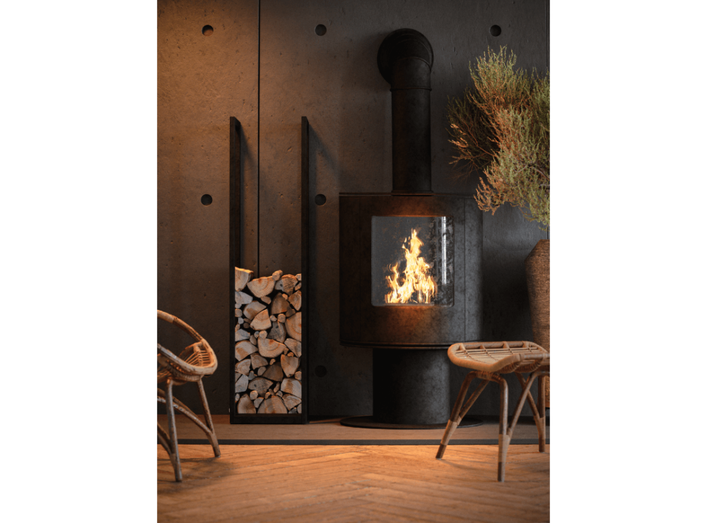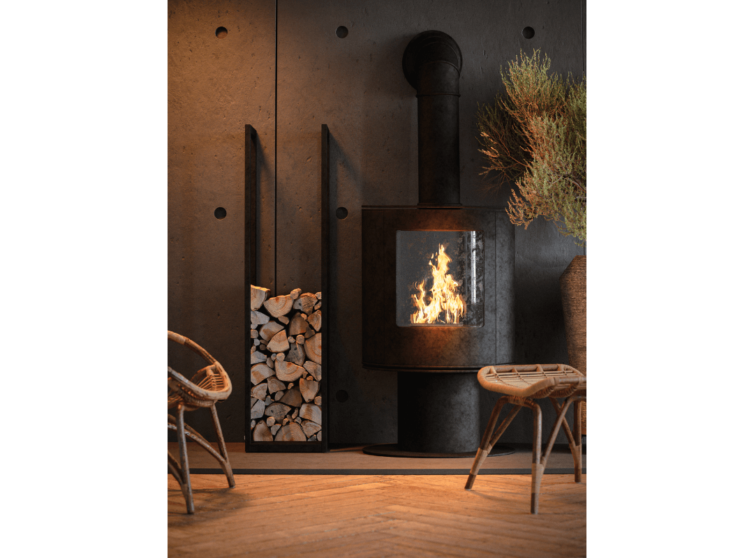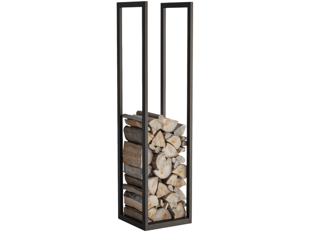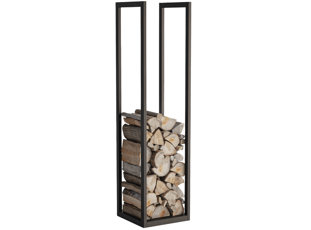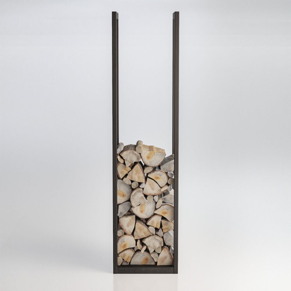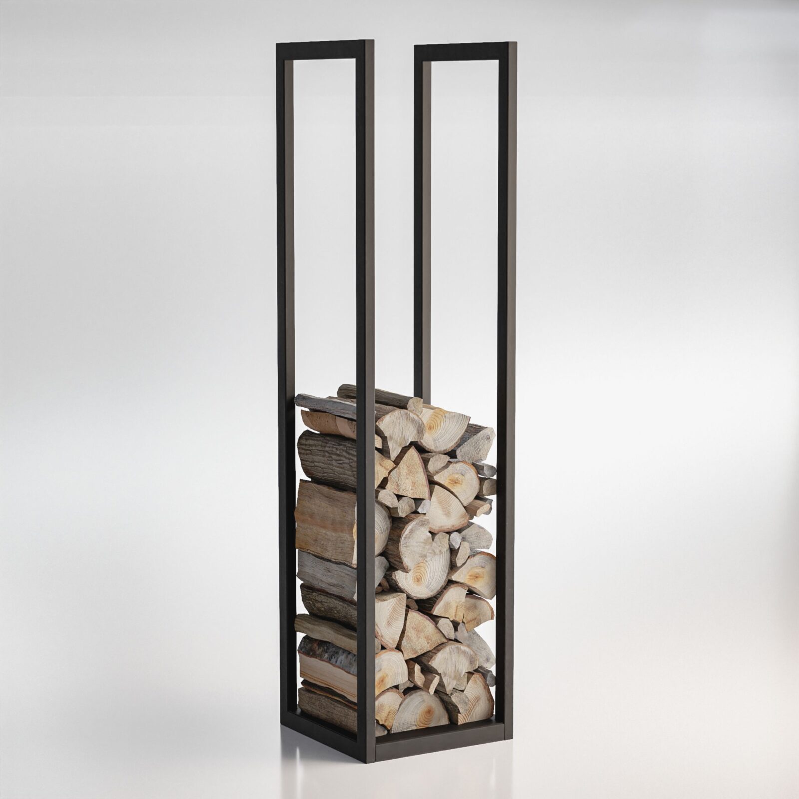 Geometryczny, minimalistyczny kształt regału sprawia, że można go wykorzystać do wnętrz w stylu loftowym, industrialnym i klasycznym. Smukła, pionowa rama o wysokości 120 cm, pozwala zgromadzić odpowiednią ilość zapasu opału, ograniczając konieczność wychodzenia na zewnątrz w zimowe, chłodne wieczory. Ponadto stojak na drewno do kominka, w którym równomiernie rozłożyłeś szczapy, staje się elementem wystroju, który nadaje pomieszczeniom ciepłego i przytulnego charakteru.