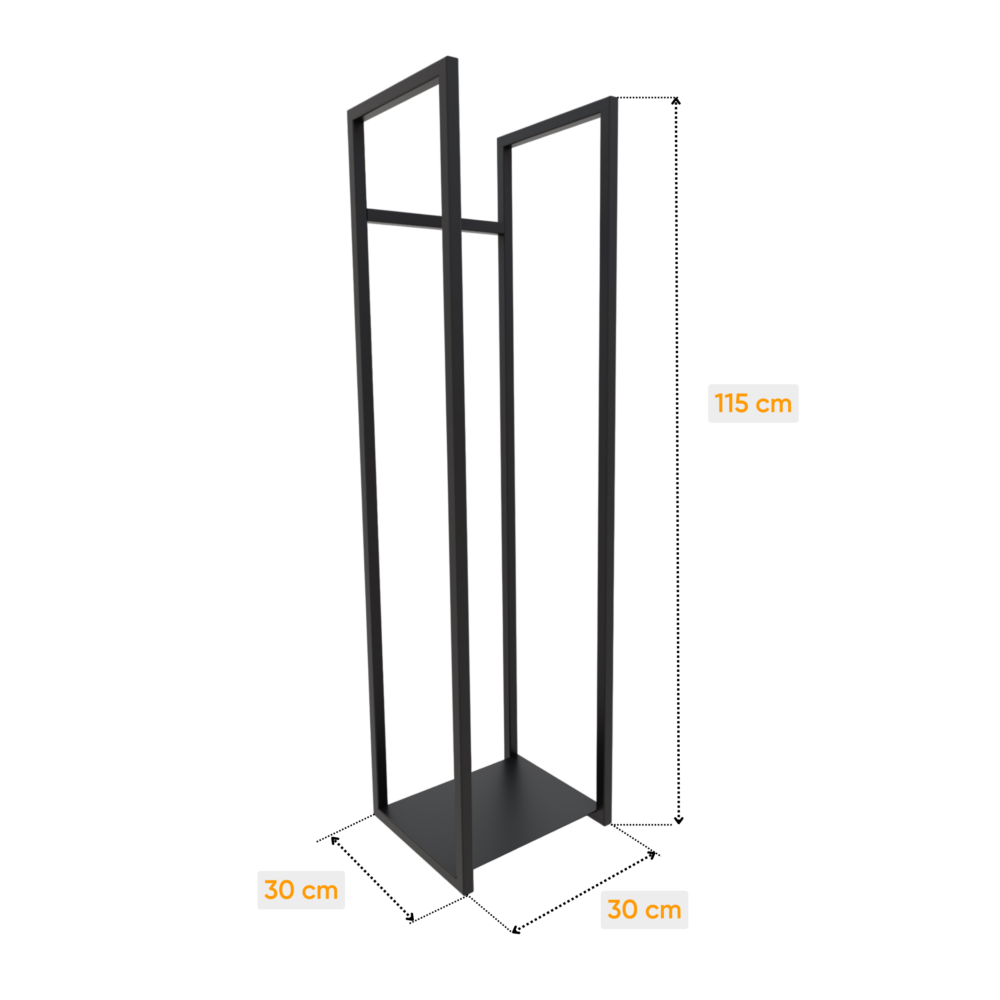 Co ważne, produkt posiada kompaktowe wymiary, z myślą o maksymalnym wykorzystaniu przestrzeni. Podstawa ma kształt kwadratu o boku 30 cm, nie zabierając dużo miejsca na podłodze, natomiast wysokość 120 cm pozwala nagromadzić spory zapas opału na długie, zimowe wieczory. Otwarta konstrukcja zapobiega zatrzymywaniu wilgoci w drewnie i tworzenia się pleśni, co jest istotne dla zdrowia domowników.