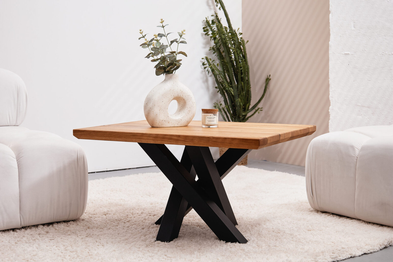 MEDIOLAN to stolik o loftowym charakterze, który dzięki surowej stali i naturalnemu dębowemu blatowi pasuje zarówno do industrialnych wnętrz, jak i bardziej klasycznych aranżacji. Jest minimalistyczny, ale nie banalny – starannie zaprojektowane detale sprawiają, że przyciąga wzrok i staje się kluczowym elementem przestrzeni.
