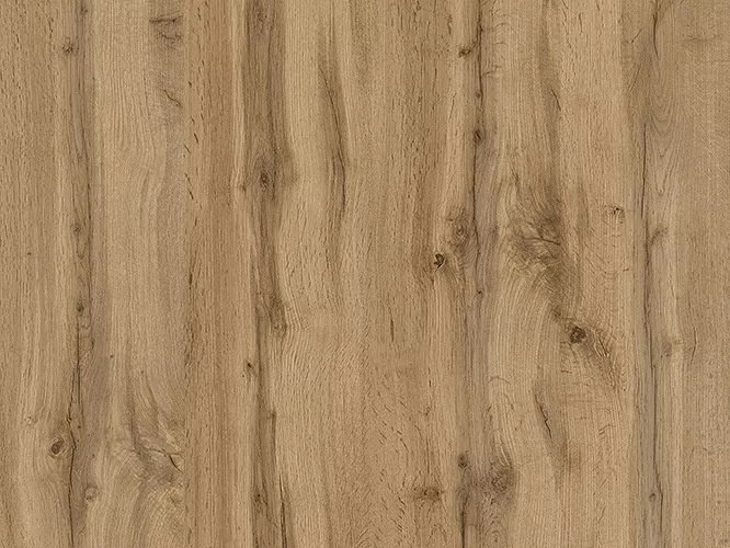 Wyrazisty kolor i delikatna struktura. Widoczne sęki, pęknięcia i nieregularne usłojenia. Możesz połączyć ten dekor zarówno z jasnymi, jak i ciemnymi materiałami. Ciepła kolorystyka naturalnego dębu doda przytulności Twoim wnętrzom. Trwała laminowana powierzchnia zabezpieczona przed zarysowaniami, wilgocią i zabrudzeniami.